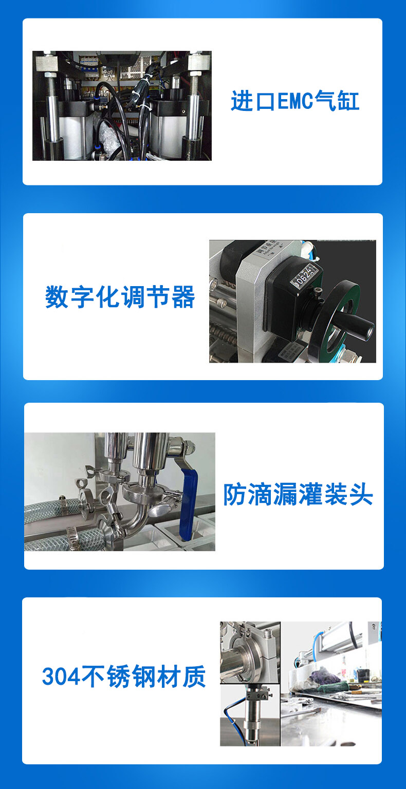 本機(jī)是針對餡料、醬料、果醬、糖漿等液體/膏體包裝精心設(shè)計(jì)的1-5L任意可調(diào)的新一代包裝設(shè)備。采用微電腦PLC自動(dòng)控制、人機(jī)界面、全封閉、下潛式灌裝。計(jì)量精度高,灌裝范圍大,結(jié)構(gòu)緊湊,運(yùn)行平穩(wěn),適合于各種規(guī)則形狀的容器灌裝,液缸及其管道拆卸、清洗,方便快捷。